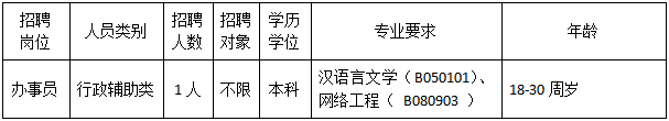 本次招聘面向社會公開招聘專項工作聘員1名,具體崗位如下:
