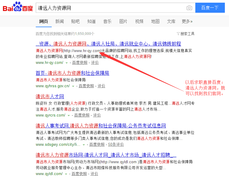 恭喜“清遠(yuǎn)人力資源網(wǎng)”m.lcpgr.com榮登百度搜索清遠(yuǎn)地 區(qū)首位。清遠(yuǎn)人力資源網(wǎng)是由清遠(yuǎn)市人力資源市場指導(dǎo)、清遠(yuǎn)市錦繡 前程人力資源有限公司運(yùn)營的官方求職招聘平臺。從3月份正式推 廣到現(xiàn)在,本網(wǎng)站已經(jīng)吸引了眾多企業(yè)與求職者注冊。